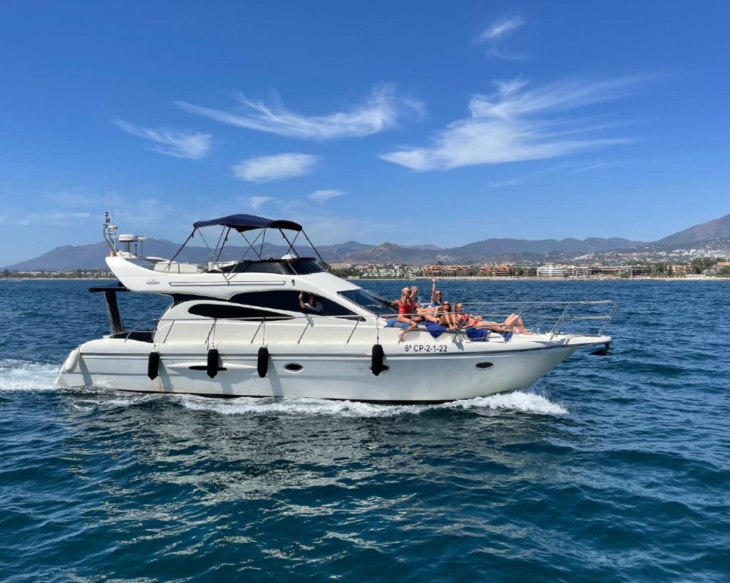 Doqueve Majestic 46, descubre el lujo y la comodidad de este barco en Marbella. Con capacidad para 12 personas, este yate ofrece una experiencia exclusiva en alta mar. Disfruta de la elegancia y el confort mientras exploras la costa de Marbella y sus alrededores. Navega con estilo y comodidad, y crea recuerdos inolvidables en este emblemático yate. ¡Reserva ahora y vive una aventura marítima única alquilando un yate en Puerto Banús, Marbella